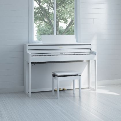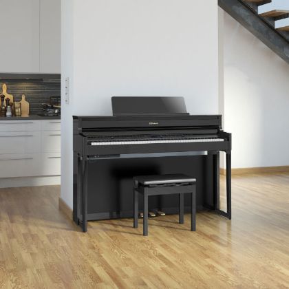 The HP704 provides the style, performance, and pristine sound projection you’d expect from a premium studio piano. With its sleek, sophisticated cabinet design, this digital piano makes a statement wherever you play it—and a range of finishes ensures it fits in anywhere. The advanced PHA-50 keyboard, onboard tutorial features, and Bluetooth connectivity with music apps mean you’ll always be inspired to play, explore and improve. And the tall, elegant cabinet houses a powerful four-speaker audio system that delivers dynamic, room-filling sound as you perform—or while you relax by streaming your favorite tunes.